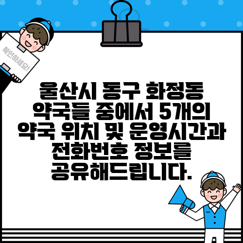 울산시 동구 화정동 약국들 중에서 5개의 약국 위치 및 운영시간과 전화번호 정보를 공유해드립니다.