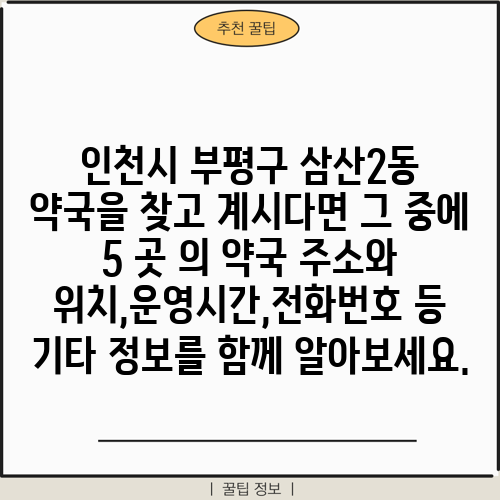 인천시 부평구 삼산2동 약국을 찾고 계시다면 그 중에 5 곳 의 약국 주소와 위치,운영시간,전화번호 등 기타 정보를 함께 알아보세요.