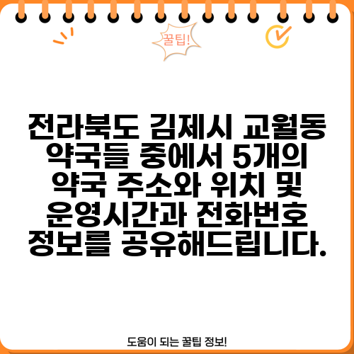 전라북도 김제시 교월동 약국들 중에서 5개의 약국 주소와 위치 및 운영시간과 전화번호 정보를 공유해드립니다.