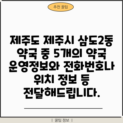제주도 제주시 삼도2동 약국 중 5개의 약국 운영정보와 전화번호나 위치 정보 등 전달해드립니다.