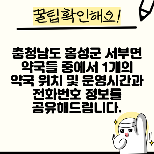 충청남도 홍성군 서부면 약국들 중에서 1개의 약국 위치 및 운영시간과 전화번호 정보를 공유해드립니다.