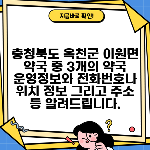 충청북도 옥천군 이원면 약국 중 3개의 약국 운영정보와 전화번호나 위치 정보 그리고 주소 등 알려드립니다.