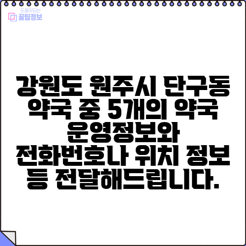 강원도 원주시 단구동 약국 중 5개의 약국 운영정보와 전화번호나 위치 정보 등 전달해드립니다.