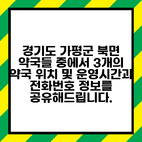 경기도 가평군 북면 약국들 중에서 3개의 약국 위치 및 운영시간과 전화번호 정보를 공유해드립니다.