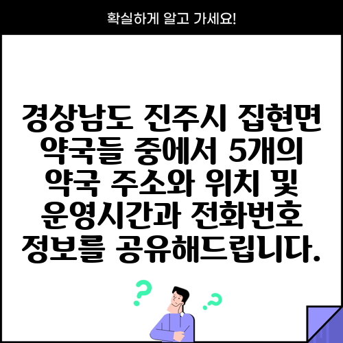 경상남도 진주시 집현면 약국들 중에서 5개의 약국 주소와 위치 및 운영시간과 전화번호 정보를 공유해드립니다.