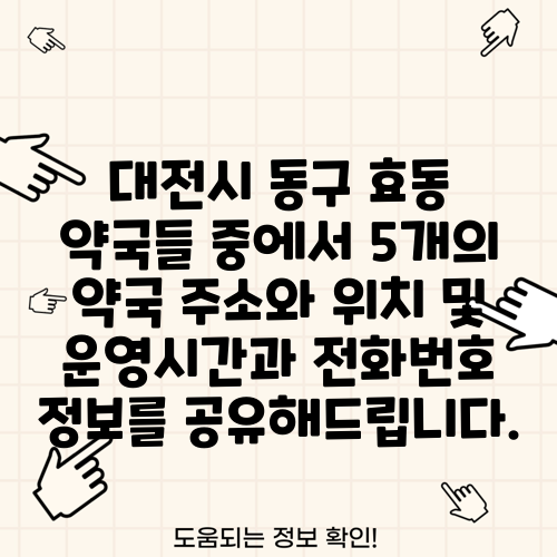 대전시 동구 효동 약국들 중에서 5개의 약국 주소와 위치 및 운영시간과 전화번호 정보를 공유해드립니다.