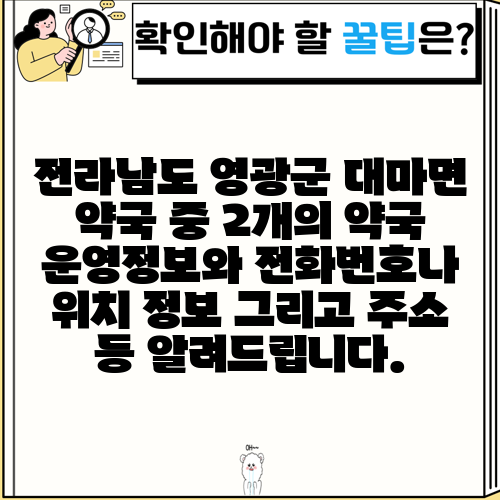 전라남도 영광군 대마면 약국 중 2개의 약국 운영정보와 전화번호나 위치 정보 그리고 주소 등 알려드립니다.