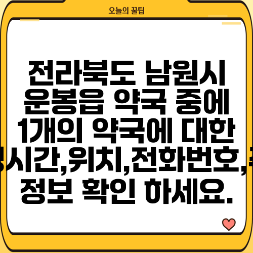 전라북도 남원시 운봉읍 약국 중에 1개의 약국에 대한 운영시간,위치,전화번호,주소 정보 확인 하세요.