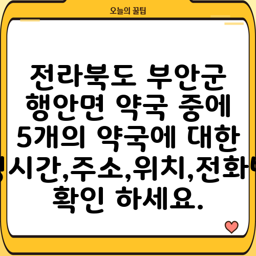 전라북도 부안군 행안면 약국 중에 5개의 약국에 대한 운영시간,주소,위치,전화번호 확인 하세요.