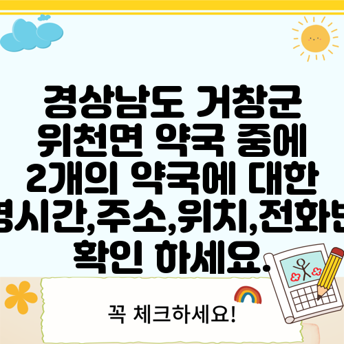 경상남도 거창군 위천면 약국 중에 2개의 약국에 대한 운영시간,주소,위치,전화번호 확인 하세요.