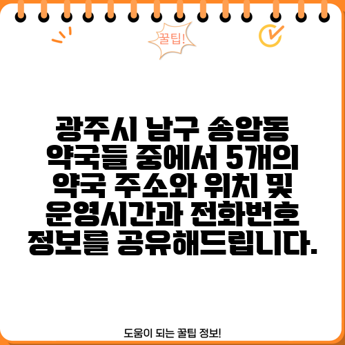 광주시 남구 송암동 약국들 중에서 5개의 약국 주소와 위치 및 운영시간과 전화번호 정보를 공유해드립니다.