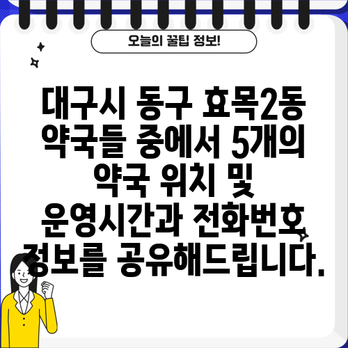 대구시 동구 효목2동 약국들 중에서 5개의 약국 위치 및 운영시간과 전화번호 정보를 공유해드립니다.