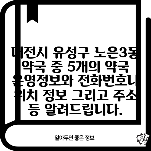 대전시 유성구 노은3동 약국 중 5개의 약국 운영정보와 전화번호나 위치 정보 그리고 주소 등 알려드립니다.