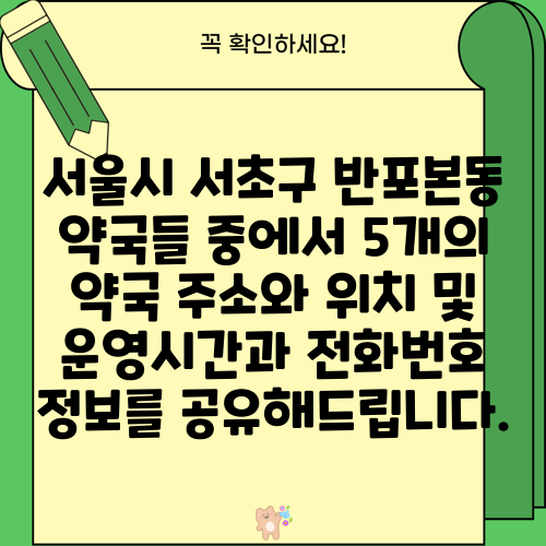 서울시 서초구 반포본동 약국들 중에서 5개의 약국 주소와 위치 및 운영시간과 전화번호 정보를 공유해드립니다.