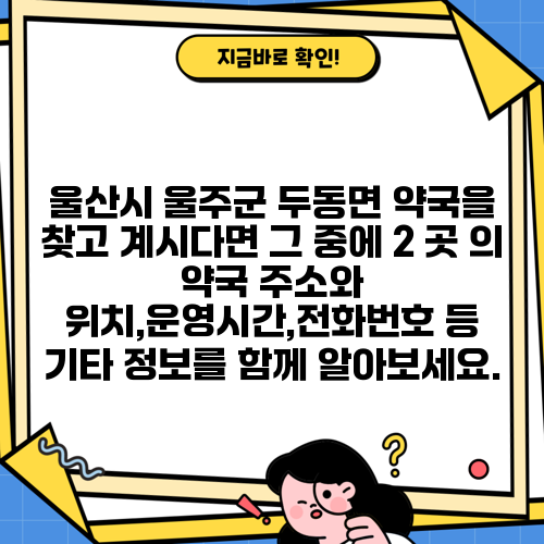 울산시 울주군 두동면 약국을 찾고 계시다면 그 중에 2 곳 의 약국 주소와 위치,운영시간,전화번호 등 기타 정보를 함께 알아보세요.