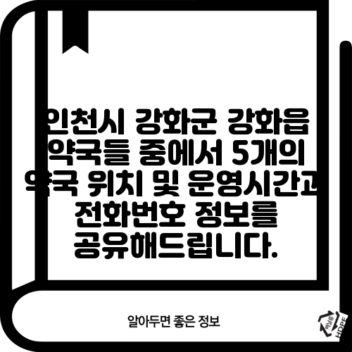 인천시 강화군 강화읍 약국들 중에서 5개의 약국 위치 및 운영시간과 전화번호 정보를 공유해드립니다.