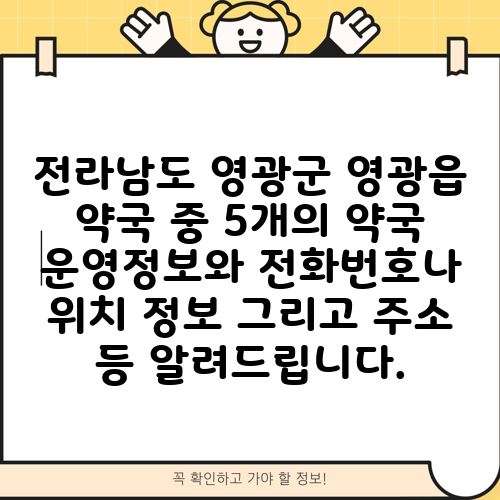 전라남도 영광군 영광읍 약국 중 5개의 약국 운영정보와 전화번호나 위치 정보 그리고 주소 등 알려드립니다.