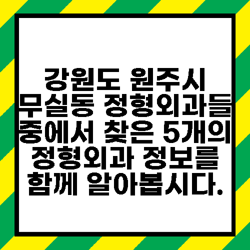 강원도 원주시 무실동 정형외과들 중에서 찾은 5개의 정형외과 정보를 함께 알아봅시다.