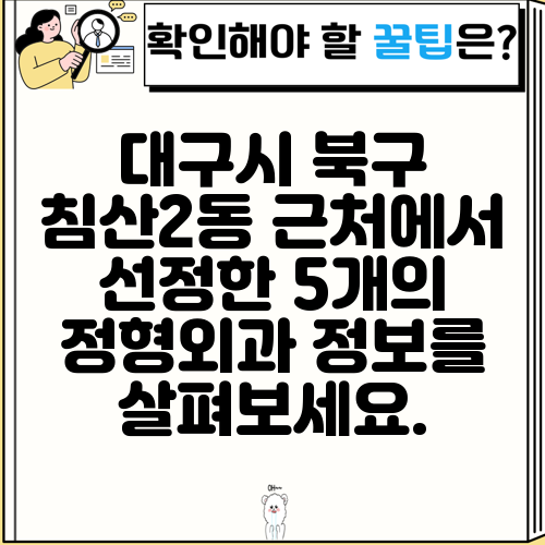 대구시 북구 침산2동 근처에서 선정한 5개의 정형외과 정보를 살펴보세요.