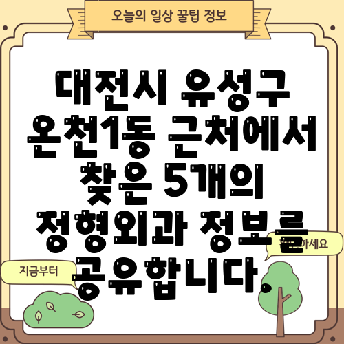 대전시 유성구 온천1동 근처에서 찾은 5개의 정형외과 정보를 공유합니다.