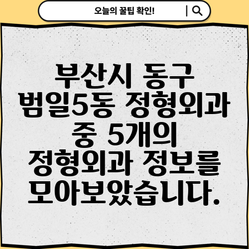부산시 동구 범일5동 정형외과 중 5개의 정형외과 정보를 모아보았습니다.