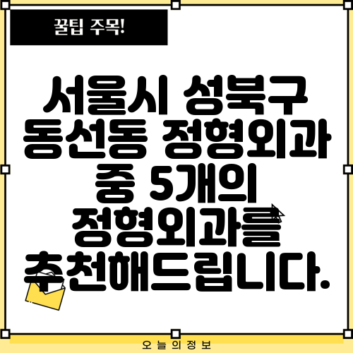 서울시 성북구 동선동 정형외과 중 5개의 정형외과를 추천해드립니다.
