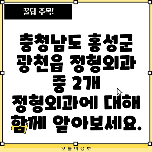 충청남도 홍성군 광천읍 정형외과 중 2개 정형외과에 대해 함께 알아보세요.