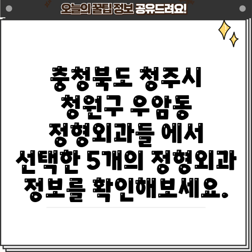 충청북도 청주시 청원구 우암동 정형외과들 에서 선택한 5개의 정형외과 정보를 확인해보세요.