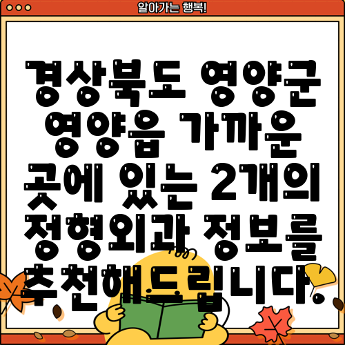 경상북도 영양군 영양읍 가까운 곳에 있는 2개의 정형외과 정보를 추천해드립니다.