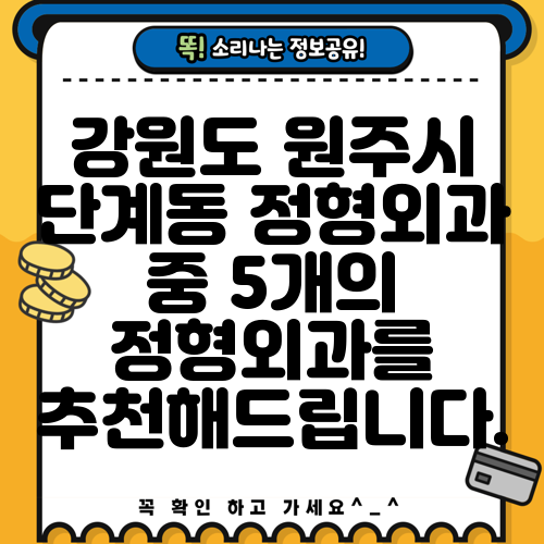 강원도 원주시 단계동 정형외과 중 5개의 정형외과를 추천해드립니다.