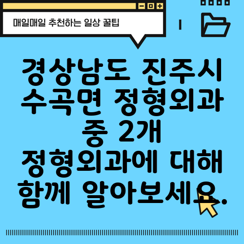 경상남도 진주시 수곡면 정형외과 중 2개 정형외과에 대해 함께 알아보세요.
