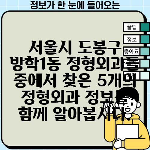 서울시 도봉구 방학1동 정형외과들 중에서 찾은 5개의 정형외과 정보를 함께 알아봅시다.
