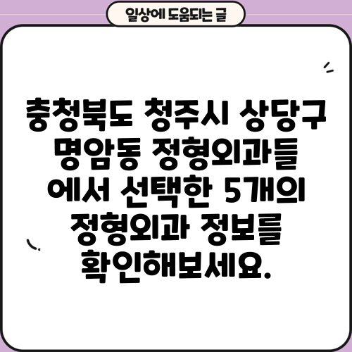 충청북도 청주시 상당구 명암동 정형외과들 에서 선택한 5개의 정형외과 정보를 확인해보세요.