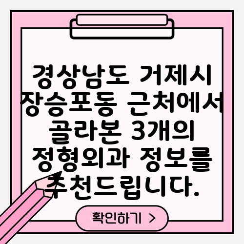 경상남도 거제시 장승포동 근처에서 골라본 3개의 정형외과 정보를 추천드립니다.
