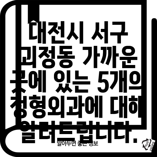 대전시 서구 괴정동 가까운 곳에 있는 5개의 정형외과에 대해 알려드립니다.
