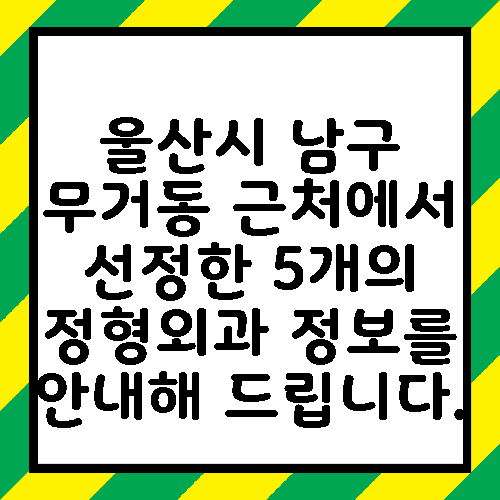 울산시 남구 무거동 근처에서 선정한 5개의 정형외과 정보를 안내해 드립니다.