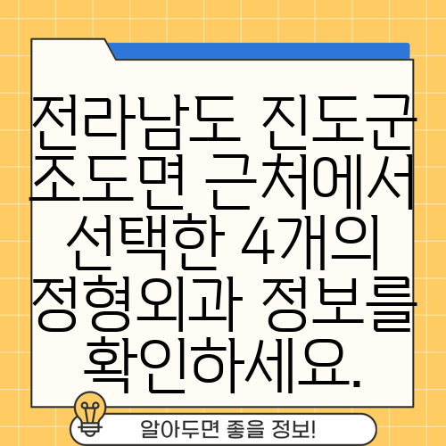 전라남도 진도군 조도면 근처에서 선택한 4개의 정형외과 정보를 확인하세요.
