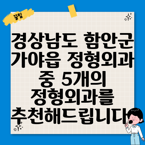 경상남도 함안군 가야읍 정형외과 중 5개의 정형외과를 추천해드립니다.