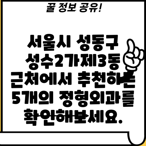 서울시 성동구 성수2가제3동 근처에서 추천하는 5개의 정형외과를 확인해보세요.
