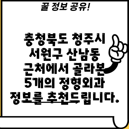 충청북도 청주시 서원구 산남동 근처에서 골라본 5개의 정형외과 정보를 추천드립니다.