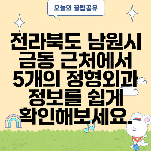 전라북도 남원시 금동 근처에서 5개의 정형외과 정보를 쉽게 확인해보세요.