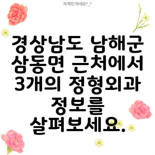 경상남도 남해군 삼동면 근처에서 3개의 정형외과 정보를 살펴보세요.