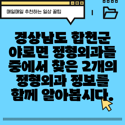 경상남도 합천군 야로면 정형외과들 중에서 찾은 2개의 정형외과 정보를 함께 알아봅시다.