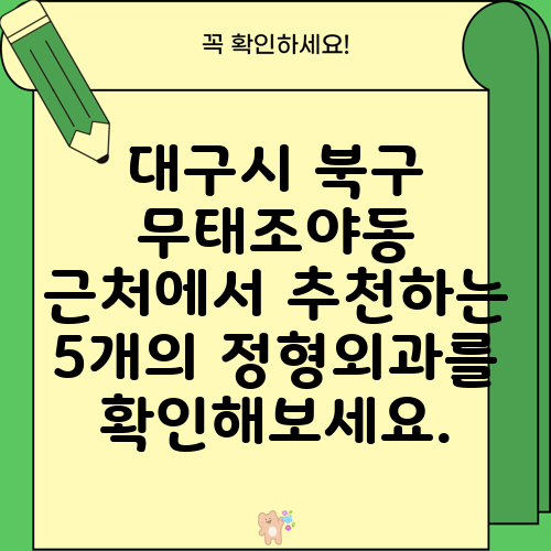 대구시 북구 무태조야동 근처에서 추천하는 5개의 정형외과를 확인해보세요.