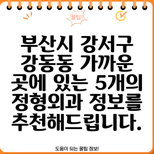 부산시 강서구 강동동 가까운 곳에 있는 5개의 정형외과 정보를 추천해드립니다.