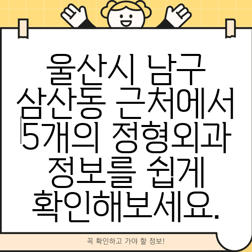 울산시 남구 삼산동 근처에서 5개의 정형외과 정보를 쉽게 확인해보세요.