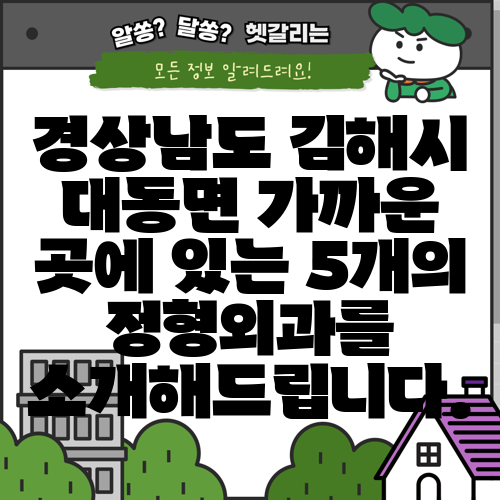 경상남도 김해시 대동면 가까운 곳에 있는 5개의 정형외과를 소개해드립니다.