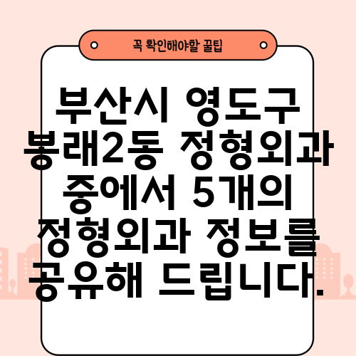 부산시 영도구 봉래2동 정형외과 중에서 5개의 정형외과 정보를 공유해 드립니다.