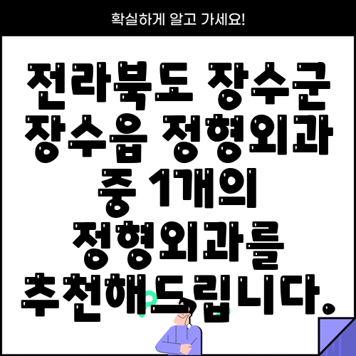 전라북도 장수군 장수읍 정형외과 중 1개의 정형외과를 추천해드립니다.