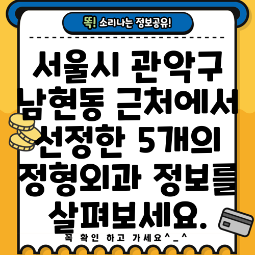 서울시 관악구 남현동 근처에서 선정한 5개의 정형외과 정보를 살펴보세요.